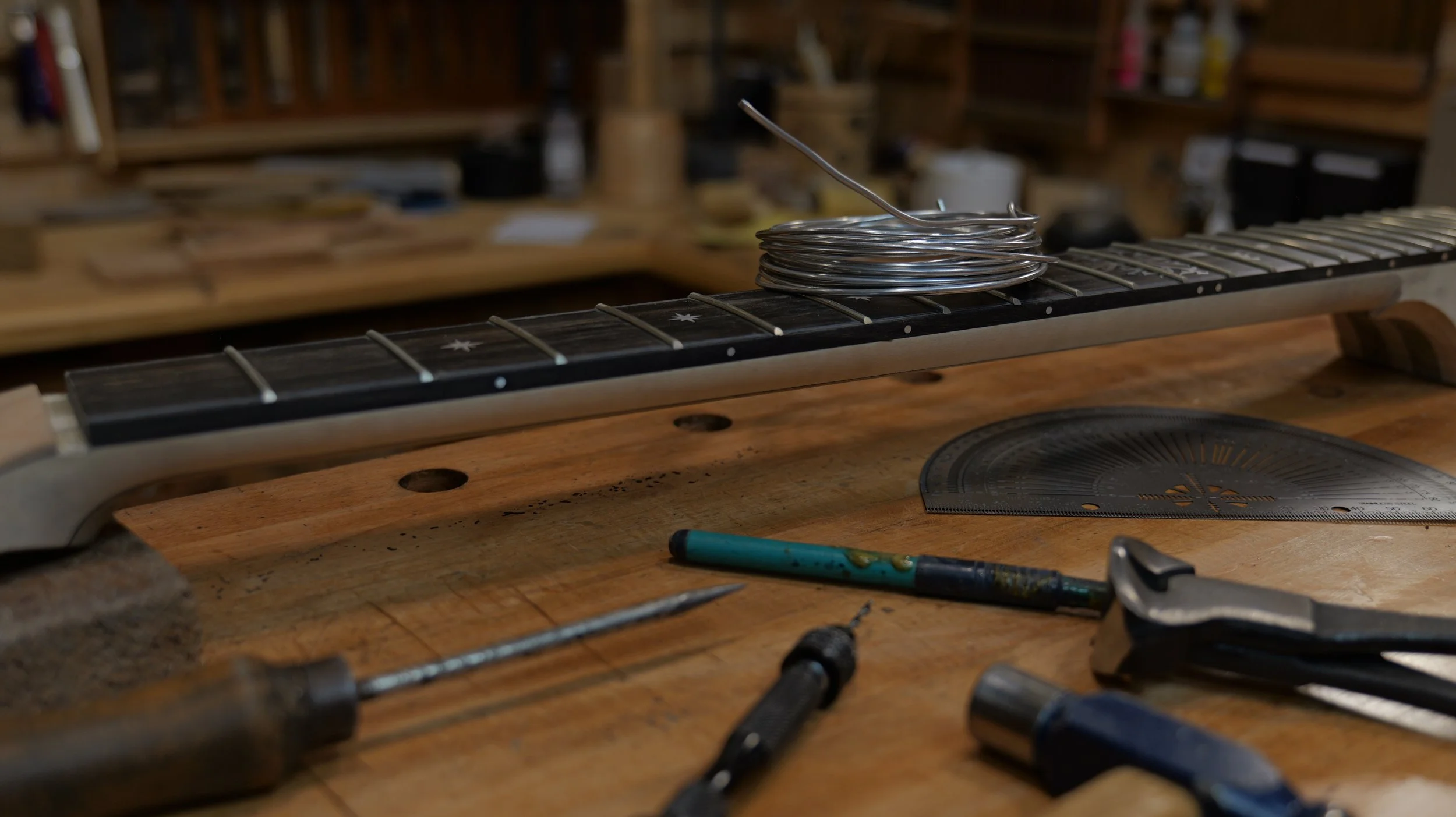 Many clients visit the workshop at least once during the build to fine-tune details such as the neck shape